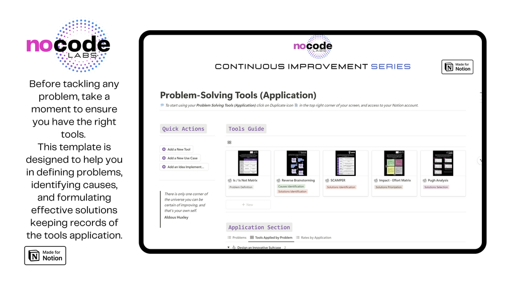 The Problem-Solving Tools (Application) Template is a solution designed to ease the process of addressing challenges and implementing effective solutions.